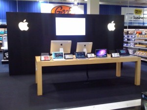 If you walk into a Best Buy you will most likely see a little piece of the store dedicated to Apple with a few MacBooks and iMacs. It is rumored that Apple might have to share some of it space with its competitors, Samsung. A report from geek.com says that similar Samsung shops will soon join the Apple shops. Geek.com says that Samsung will do this in an effort to promote the Galaxy S4.