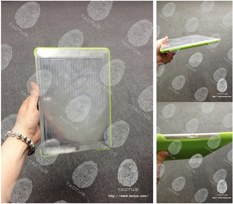 Many new cases and parts for the iPad 5 are surfacing and now we can add the case from Tactus to the list of iPad 5 items. As seen in the pictures, the iPad 5 looks like all of the rumors we’ve heard so far. The iPad 5 case is compared to an iPad case for the 2, 3, or 4 (shown above). The iPad 5 looks exactly like an iPad mini, but bigger. They both share the same bottom port and speaker design and the top (shown below) is all the same.